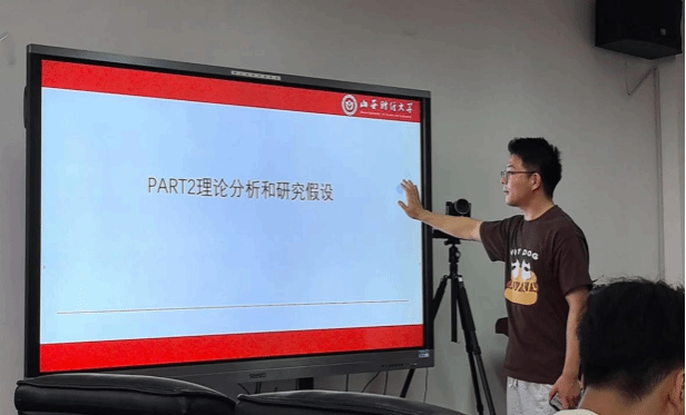 汇报结束后,同学们对这一主题进行了深入的思考和讨论,现场气氛热烈。讨论过后,同学们对不解之处进行了提问,一是金融科技促进企业绿色技术创新还可以从哪些方面提供传导机制的思路?二是为什么这篇文献中将核心解释变量企业绿色技术创新(GTI)进行了滞后一期处理?针对同学们的疑问,汇报小组成员逐个给出了自己的见解。