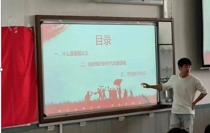 团课上,韩家豪老师首先为大家诠释了爱国主义的科学内涵和爱国主义的重要意义。随后,韩老师结合实际,多方面、多维度地为大家详细讲解了如何做好新时代的理性爱国者。最后,韩老师结合当下,教导同学们要遵守校纪校规,法律法规,成长为知法、懂法、守法的新时代青年。