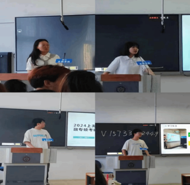 保研成功的3位优秀毕业生代表—保送至西南财经大学的高璐、北京交通大学的韩玉坤、上海外国语大学的孙语凡从个人情况、保研条件、流程以及学校推免要求等方面进行分享,提醒同学们早做准备,积极参加各类国家级项目和大赛,不断丰富和积累个人保研材料。特别强调,在保研过程中,保持积极向上心态尤为重要。