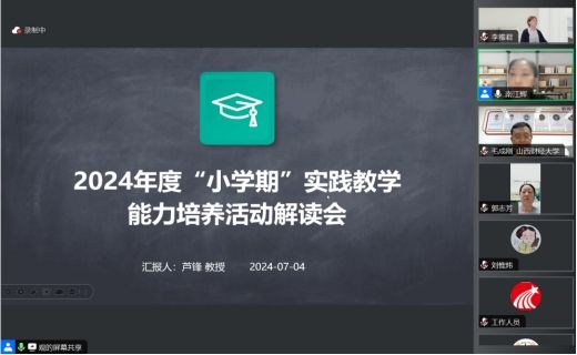 开展普通全日制本科生“小学期”实践能力培养活动实施意见》的文件精神,并简要介绍了参与本次活动的老师以及本次解读会的具体流程。