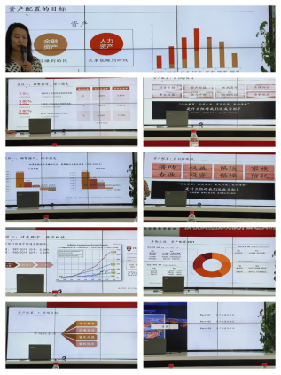 其次便是由有过丰富工作经验的张洁经理分享了她的有关资产配置方面的经验。张洁老师通过引入“幸福的生活”介绍了资产配置的目标,误区及方法。期间,她与我们间的问答也使我们更了解生活中“资产配置理论4321”的应用。