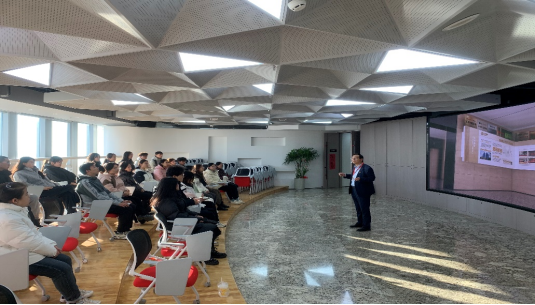 随后,副总经理史海兵为同学们讲述了三立期货公司的发展历程。他详细介绍了公司的部门职能、期货市场的发展前景,并解释了公司名字“三立”所蕴含的“立公、立信、立德”的理念。史总还展示了公司的预期设计方案,包括从业人员公示栏、业务分支显示屏、公司三十年发展历程展示墙等,让学生们对公司有了更加直观和全面的了解。
