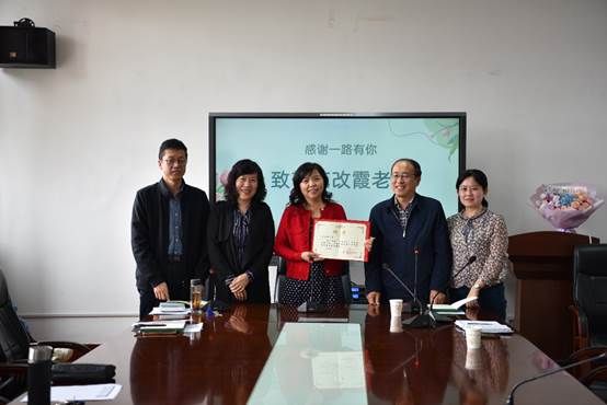 党委书记张继平首先代表学院领导班子和全院师生,对苑老师为学校、学院改革、发展、稳定所作的贡献、所付出的努力表示感谢。其次,结合主题教育,倡议大家“致敬苑改霞老师”,主要是学习她的优秀品质,这些品质主要体现在“忠诚”两字,一是对事业的忠诚,无论何时、何岗位,始终坚持认真完成学校、学院的各项工作任务;二是对组织的忠诚,不管遇到什么情况,始终同党中央保持高度一致,当个人利益与集体利益发生冲突时,坚决维护组织和集体利益;三是对专业的忠诚,无论人在何处、遇到何事,始终没有放弃对专业的执著要求。第三,在祝福苑改霞老师的同时,希望她能够在教育教学改革、传帮带等方面继续为青年教师和金融学子尽其所能、倾其所有,让红色金融在更多领域、更多层面传承、弘扬光大。院长李静萍对苑改霞老师的教师职业生涯进行了回顾,对苑改霞老师在人才培养、科学研究和教学传承等方面做出的贡献给予了高度评价,并颁发了荣誉证书和校友纪念章。