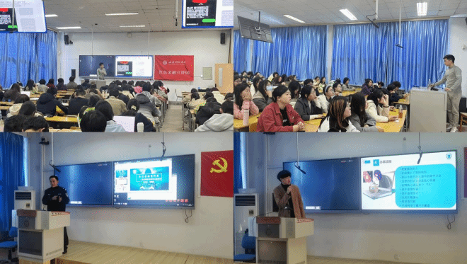本科生第三党支部组建的红色金融宣讲团结合专业特色,在学校保卫部、驻站民警以及太原市公安局反诈讲师团的指导下,遴选优秀学生党员通过集体备课、案例搜集、经验交流等形式,开展针对校园防范电信诈骗的专项宣讲。3月12日下午,红色金融宣讲团成员在迎泽校区北图201、203阶教进行了防范电信诈骗的宣讲,学院2023级本科生辅导员及400余名2023级本科生参加了此次活动。