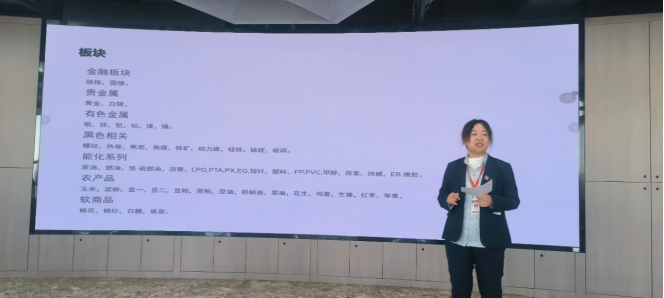 进入实训活动的第三部分,同时也来到了本次实训活动的高潮。闫远老师为我们准备了《期货入门》这一部分的具体讲解,通过介绍目前期货市场上的各大主要板块与具体期货指标的分析学习,帮助我们在期货实操这一部分得到更完整的认知。在这一过程中,闫老师依旧认真调动同学们的积极性,通过和大家互动交流来帮助巩固知识,为之后的实操部分打好基础。《期货入门》这一课程通过讲解完整的期货实操内容介绍、高时效性的信息获得渠道、交易的具体步骤等方面,令我从中受益匪浅。